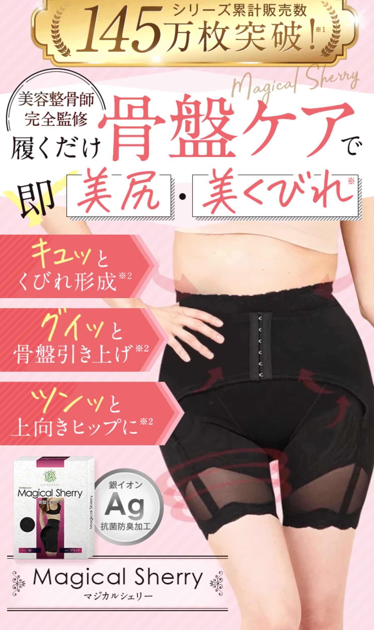 「マジカルシェリー」は、骨盤周りを整え、履くだけで美尻&くびれを実現します。