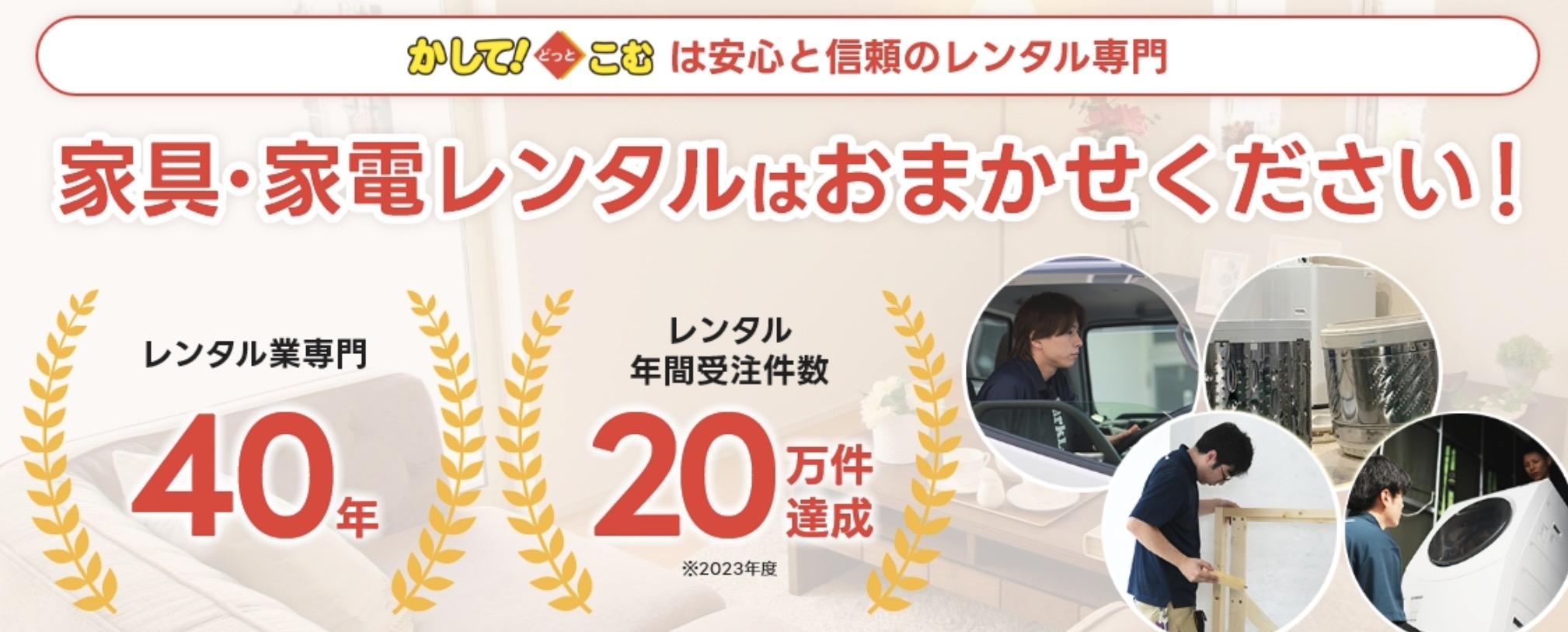そこで注目なのが、家電・家具レンタルサービスです。 かして!どっとこむなら、煩わしい買う手間・処分の手間をぐっと軽くして、手軽にスタートできます。